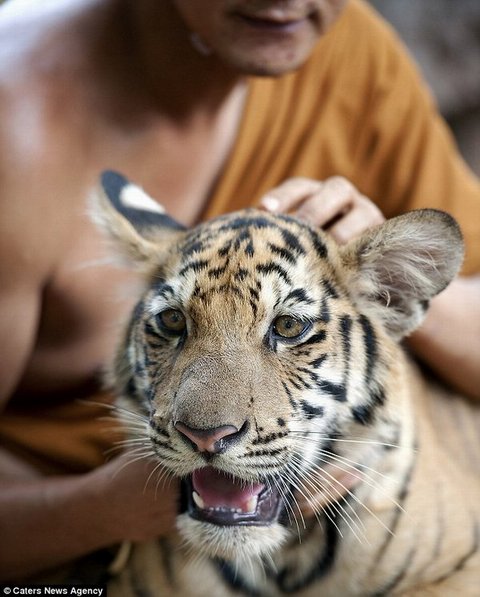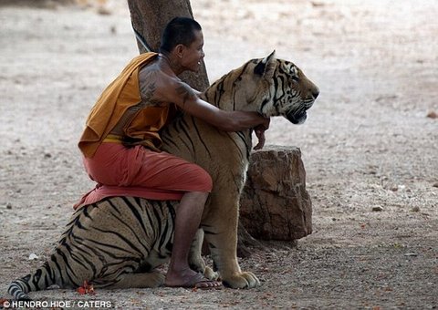 Hendro, from Jakarta, Indonesia, said: 'When I heard about the monk and tiger I knew I had to get a shot of them together. They are an odd friendship.