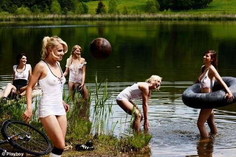 The madchen took part in their raunchy photo-shoot for the German edition of Playboy magazine, which went on sale yesterday and will be found on top shelves all over the host country during the duration of the three-week tournament that kicks off in Germany on June 26.